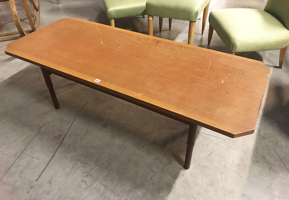Tavolo basso con piano ottagonale bordato e impiallacciato. struttura in teak...