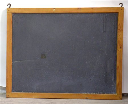 Piccola lavagna da scuola con cornice in legno, inizio secolo XX (cm 77x98)(difetti)