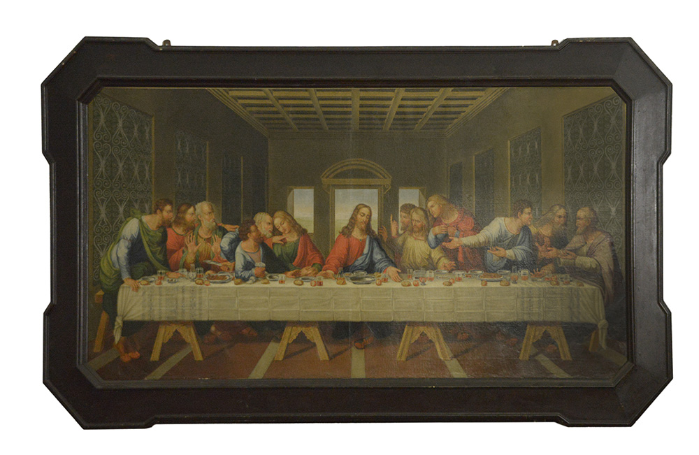 Ignoto "L'ultima cena" olio su tela (cm 125x254) in cornice a vassoio (difetti)