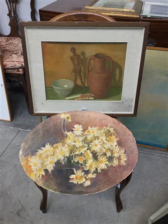 Lotto composto da un dipinto ad olio raffigurante natura morta in cornice e...