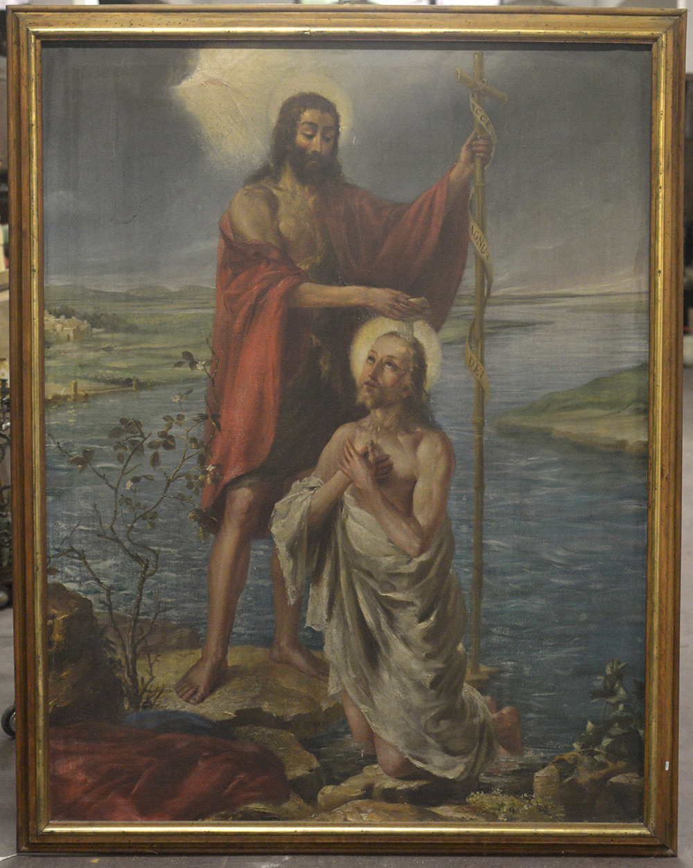 Ignoto di inizio secolo XX, "San Giovanni Battista" olio su tela (150x115) in cornice (difetti)