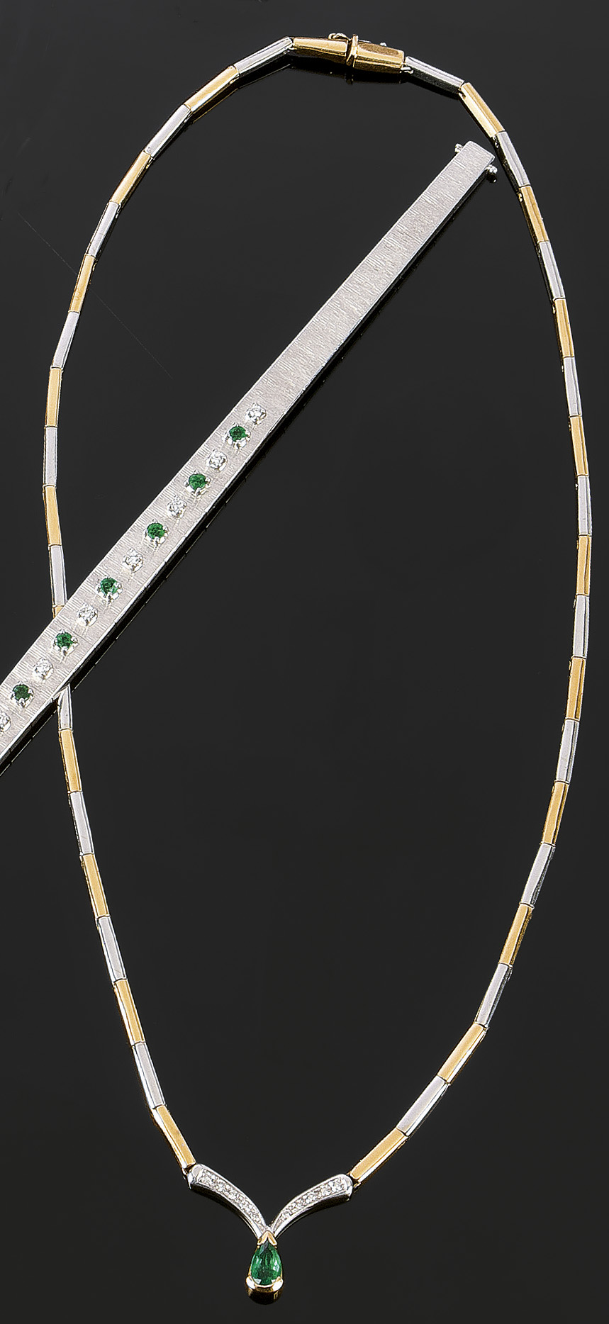 Lot 222 | COLLANA Collana in oro bianco e giallo con goccia di smeraldo pendente di ct...