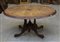 Tavolino ovale lastronato con piedi di forma sagomata muniti di rotelle (cm 128x h. 66) (difetti)