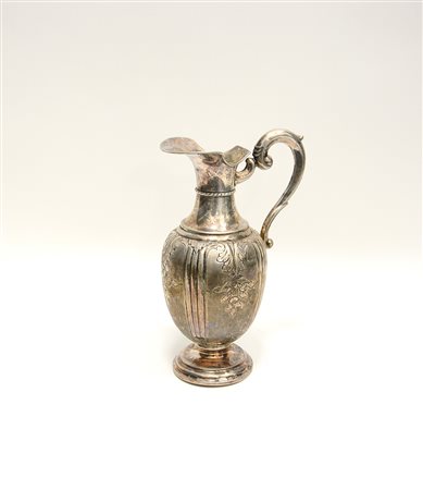 Brocca in argento con corpo inciso a motivi vegetali. manico sagoamto (gr 440...