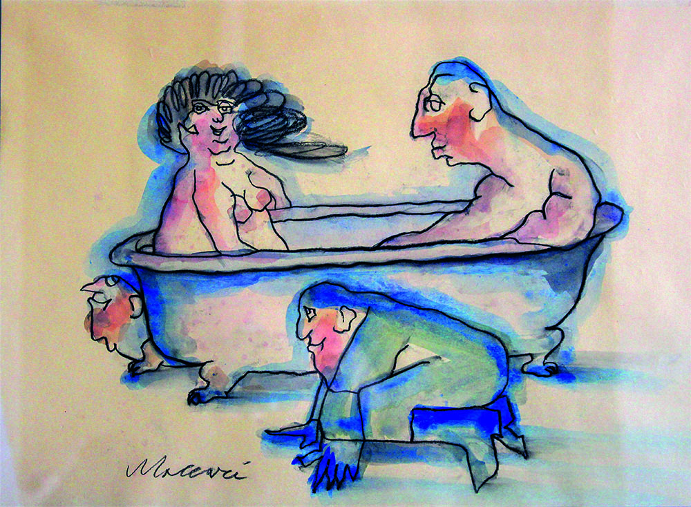 Mino Maccari Figure in vasca acquerello su carta 42x31 autentica dell'artista...