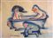 Mino Maccari Figure in vasca acquerello su carta 42x31 autentica dell'artista su foto