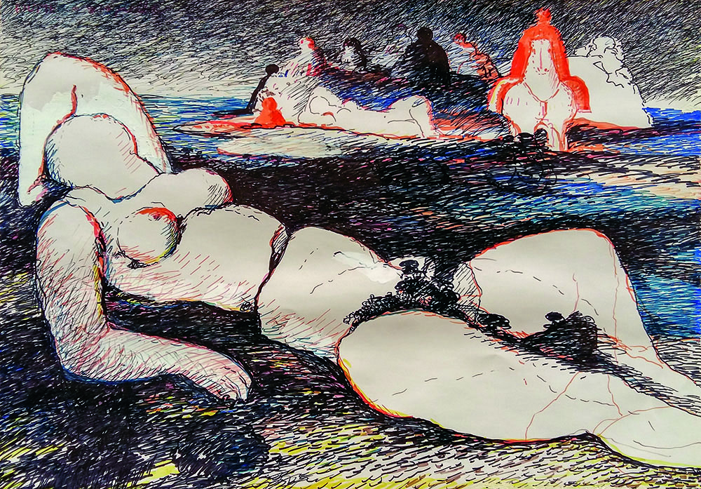 Lot 37 | Salvatore Fiume Nudo nel paesaggio pennarelli su cartoncino 70x100