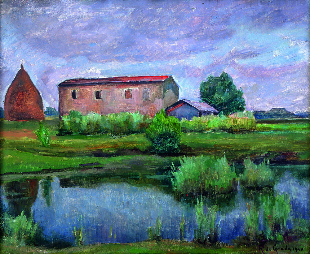 Raffaele De Grada Campagna olio su tela del 1946 50x60 autentica sul retro