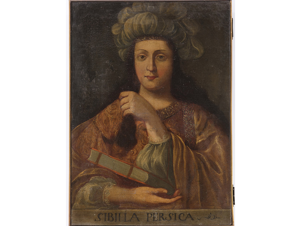 Anonimo Maestro del XVII secolo Sibilla persica 63x45 cm Olio su tela