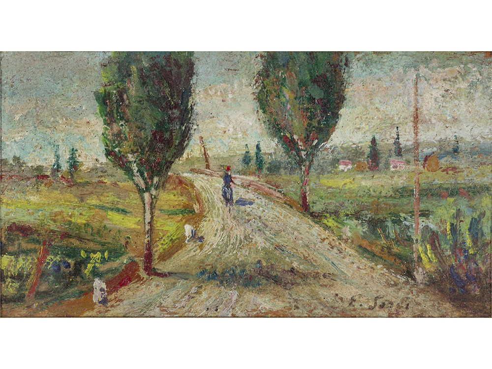 Giulio Sorbi Giulio Sorbi (1883-1975) Paesaggio con figure 5,5x11,5 cm Olio su tavola