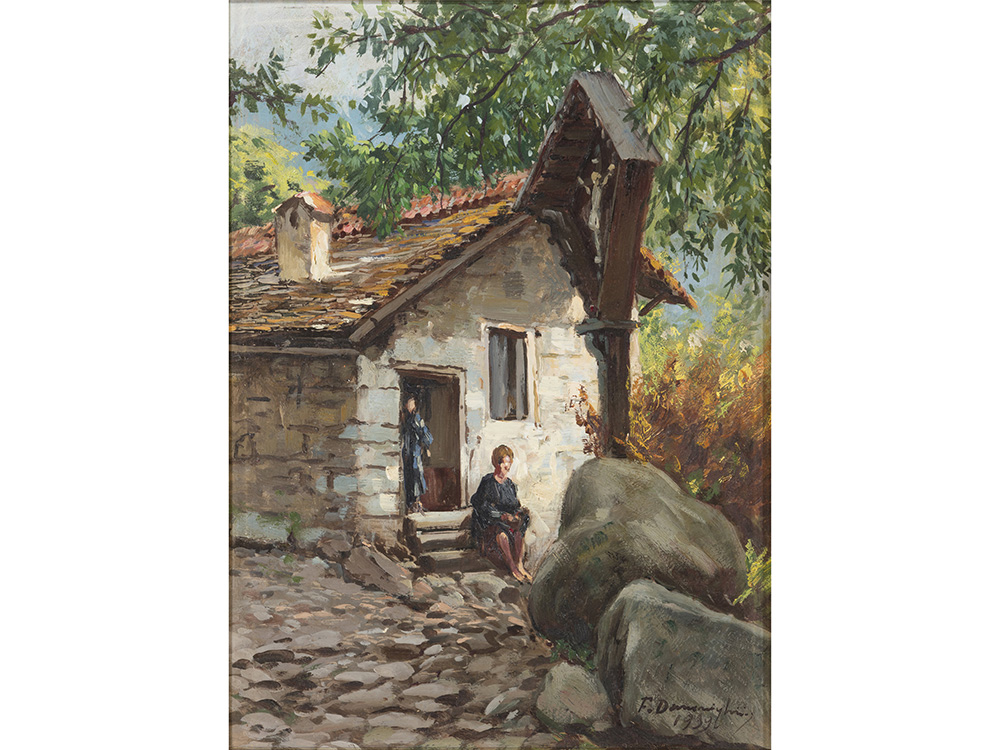 Francesco Domeneghini Francesco Domeneghini (1860-1950) Degna 36x27 cm Olio...