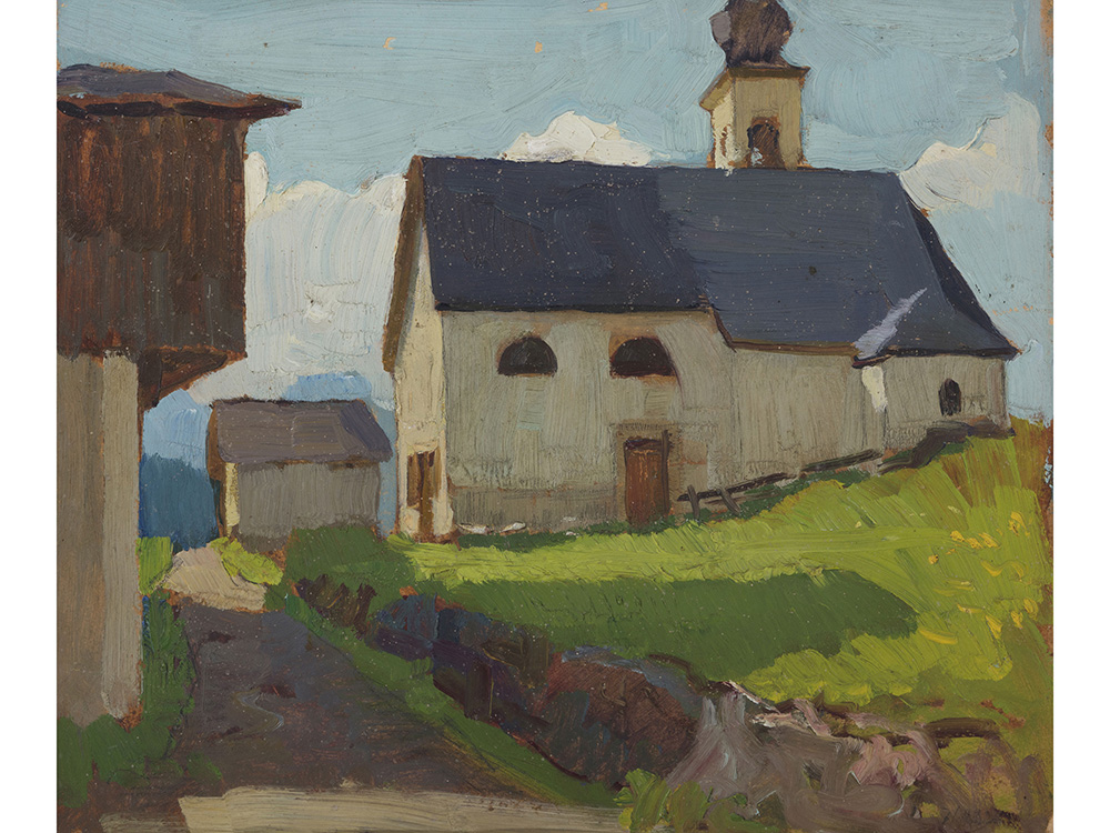 Anonimo Anonimo (XIX secolo) Veduta montana 28x34 cm Olio su cartoncino
