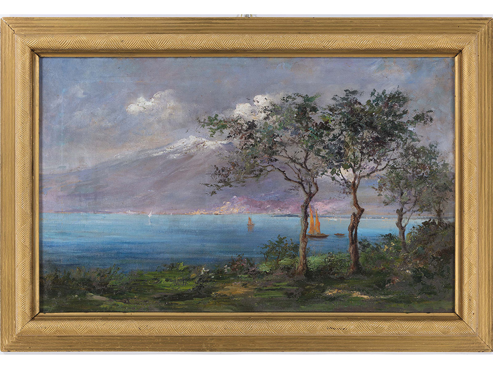 Anonimo Anonimo (XIX secolo) Veduta del Monte Baldo da Salò 50x80 cm Olio su...