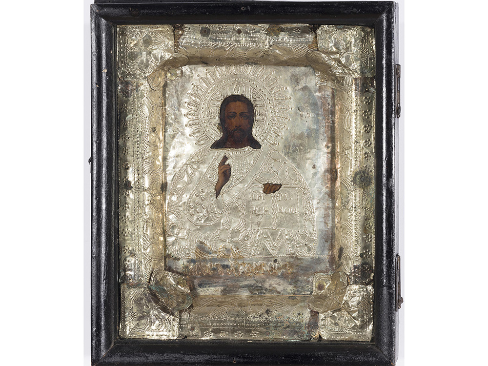 Icona russa Icona russa (XIX secolo) Cristo Pantocratore 31,5x26 cm Pigmenti...