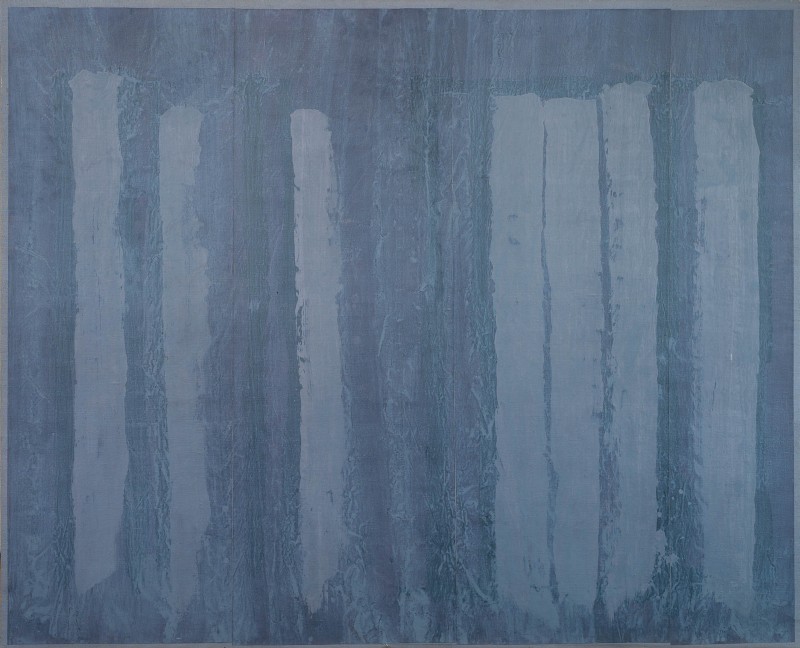 Toti Scialoja Roma 1914 - 1998 Grigio, 1978 Tecnica mista e collage su tela, cm. 141x176 Titolo, data e firma al verso sul telaio: "Grigio" 1978 / Scialoja 1978.