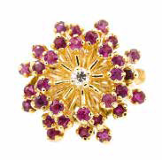 ANELLO in oro giallo con rubini e brillante, gr. 8,5