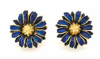 ORECCHINI in oro giallo e smalti, gr. 13,6