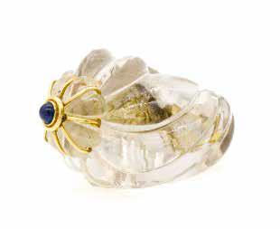 ANELLO in quarzo fumé e cristallo di rocca con piccolo zaffiro cabochon