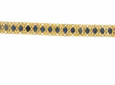 BRACCIALE in oro giallo con zaffiri cabochon e perline, gr. 101,3