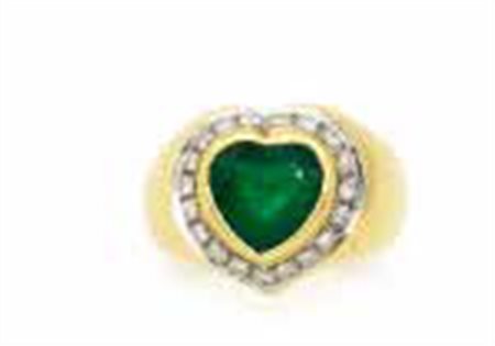 ANELLO in oro giallo con brillanti e smeraldo taglio a cuore, gr. 15