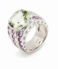 ANELLO in oro bianco con berillio del peso di ct. 7,00 circa, gr. 23,2