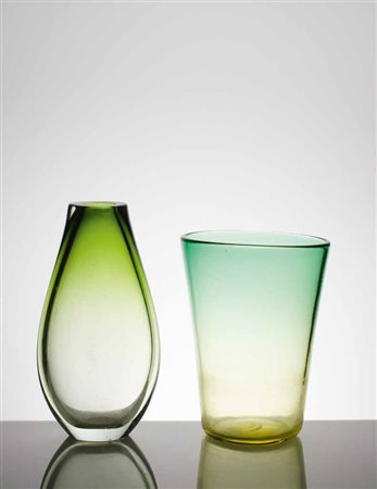 MANIFATTURA MURANESE Vaso in vetro pesante con decoro sfumato nei toni del verde. altezza: cm 37