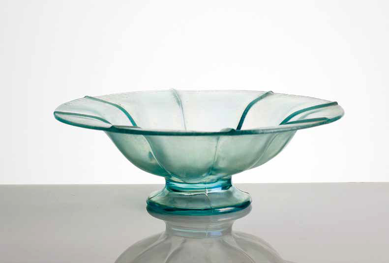 MANIFATTURA MURANESE Coppa in vetro azzurro con superficie fortemente...