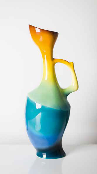 MARIO STURANI (1906-1978), LENCI Vaso in terracotta maiolicata decorata in policromia, anni ‘60. Marca: Lenci / Made in Italy / Torino CB. Reca vecchia etichetta: Lenci Torino Made in Italy. altezza: cm 48,5. Esposizioni: Monaco, Museo Villa Stuck, Die Fünfziger: Stilkonturen einesJahrzehnts. Italien, Skandinavien, Frankreich, Deutschland, USA, Polen, England, Niederlande, 13 gennaio – 26 febbraio 1984. Bibliografia: AA. VV., Die Fünfziger: Stilkonturen eines Jahrzehnts. Italien, Skandinavien, Frankreich, Deutschland, USA, Polen, England, Niederlande, Monaco, 1984, pag. 78, n. 90 (ill.)