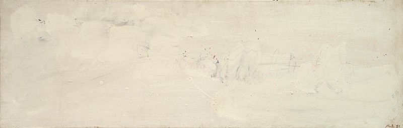 Gastone Novelli Vienna 1925 - Milano 1968 Scrivere non serve più, 1959 Tempera e matita su tela, cm. 37,7x118 Firma e data in basso a destra: Novelli 59; firma, data e titolo al verso sulla tela: Novelli 59 / Scrivere / non / serve / più. Storia: Collezione Monini, Roma; Galleria Vinciana, Milano; Collezione privata Certificato su foto Archivio Gastone Novelli, con n. 95592T38117. Esposizioni: Gastone Novelli. Mostra antologica, a cura di Flaminio Gualdoni e Walter Guadagnini, Milano, Fondazione Arnaldo Pomodoro, 9 marzo - 10 maggio 2006, cat. p. 66, illustrato a colori. Bibliografia: Paola Bonani, Marco Rinaldi, Alessandra Tiddia, Gastone Novelli. Catalogo generale 1. Pittura e scultura, Silvana Editoriale, Cinisello Balsamo, 2011, p. 172, n. P/1959/05.