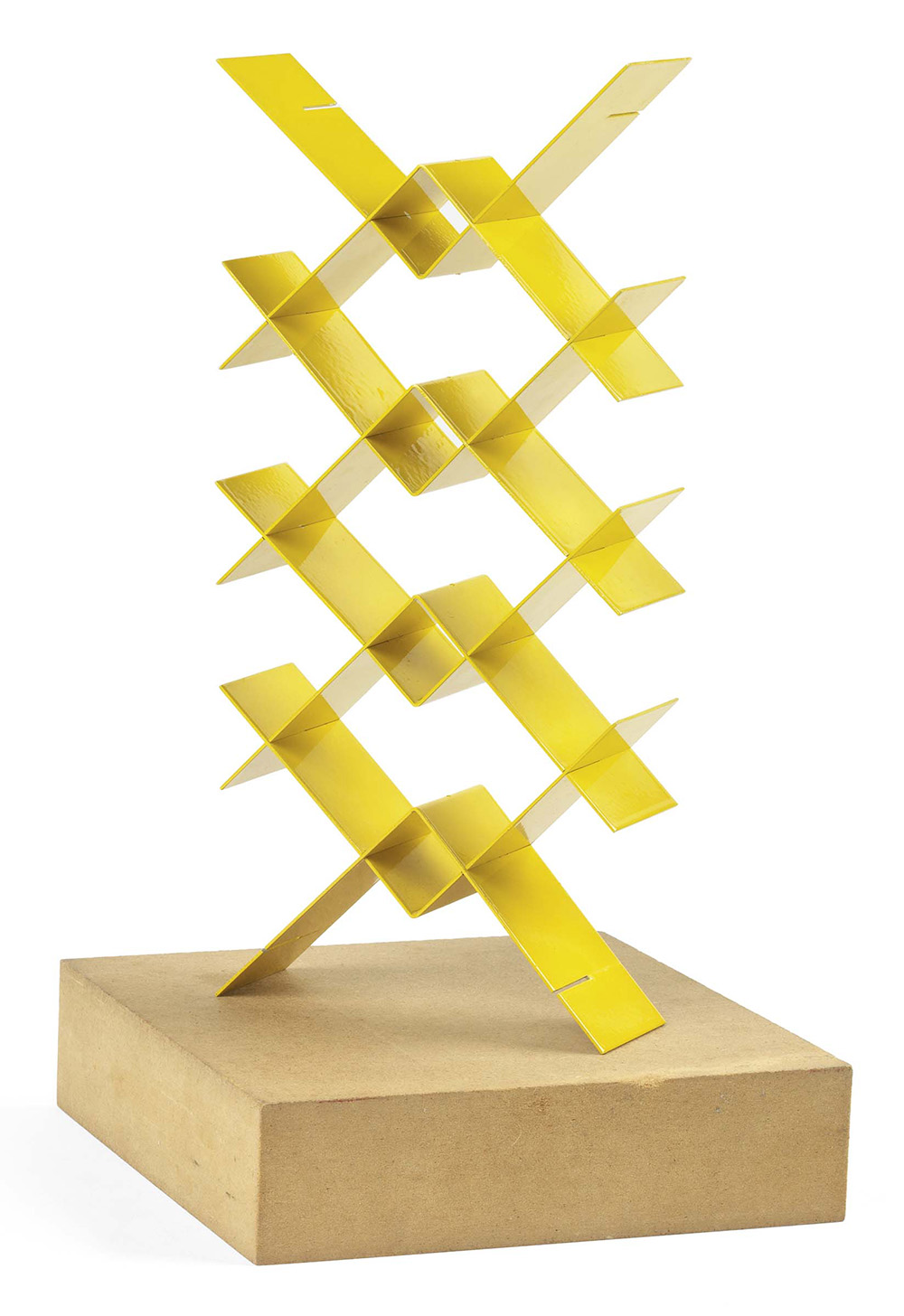 Bruno Munari, Milano 1907 - 1998, Strutture continue, 1961-89, Otto elementi in metallo verniciato e base in MDF, multiplo, es 13/250, cm 5x20 ogni elemento, cm 20x20x5 (base), Firma sulla base entro etichetta Centrodomus, Milano, con dati dell'opera, Certificato con foto di Giò Marconi, Milano, 4/4/2017, Bibliografia: Domus, numero 724, febbraio 1991, p nn