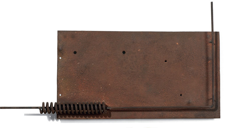 Ettore Colla Parma 1896 - Roma 1968 Rilievo con spirale, 1966 Pannello a muro in lamiera di recupero, cm. 33x63 Al verso: etichetta L'Isola, Roma. Realizzato in due esemplari. Bibliografia: Giorgio De Marchis, Sandra Pinto, Colla, con una prefazione di J.J. Sweeney e una poesia di W. Sandberg, Bulzoni Editore, Roma, 1972, n. 182.