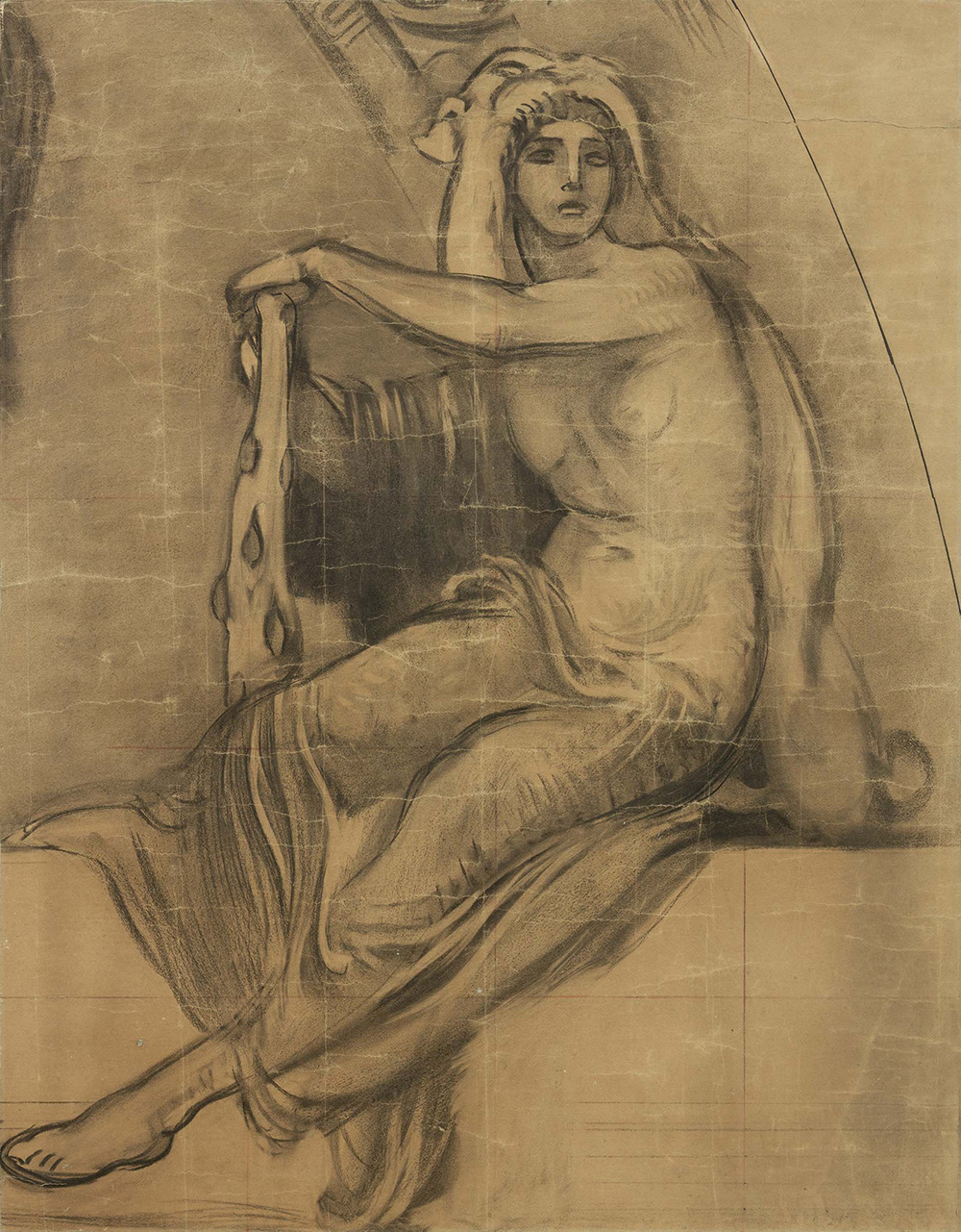 Achille Funi, Ferrara 1890 - Appiano Gentile (Co) 1972, Studio di decorazione, Tecnica mista su carta applicata su tela, cm 92,3x72