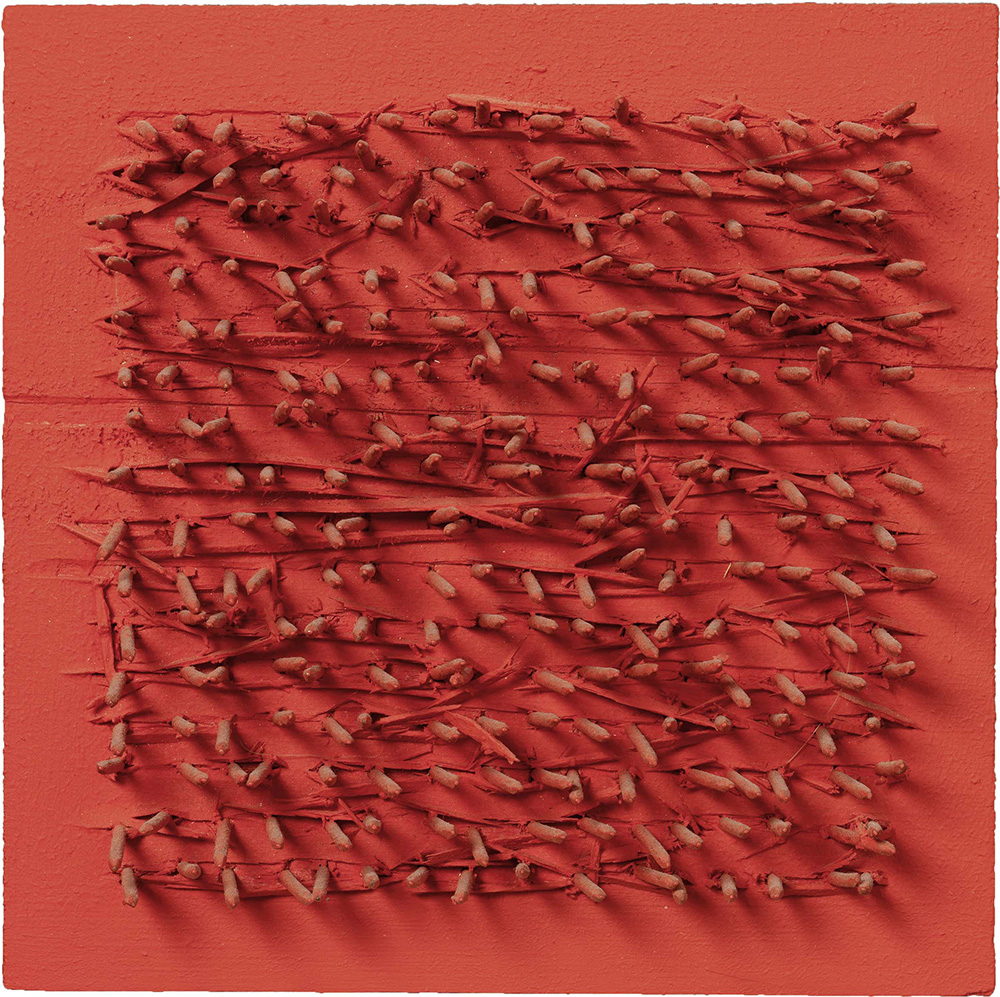Bernard Aubertin, Fontenay-aux-Roses 1934, Tableau Clous, 1970, Olio e chiodi su tavola, cm 20x20, Firma e data al verso: Bernard Aubertin 1970, Foto autenticata dall'artista