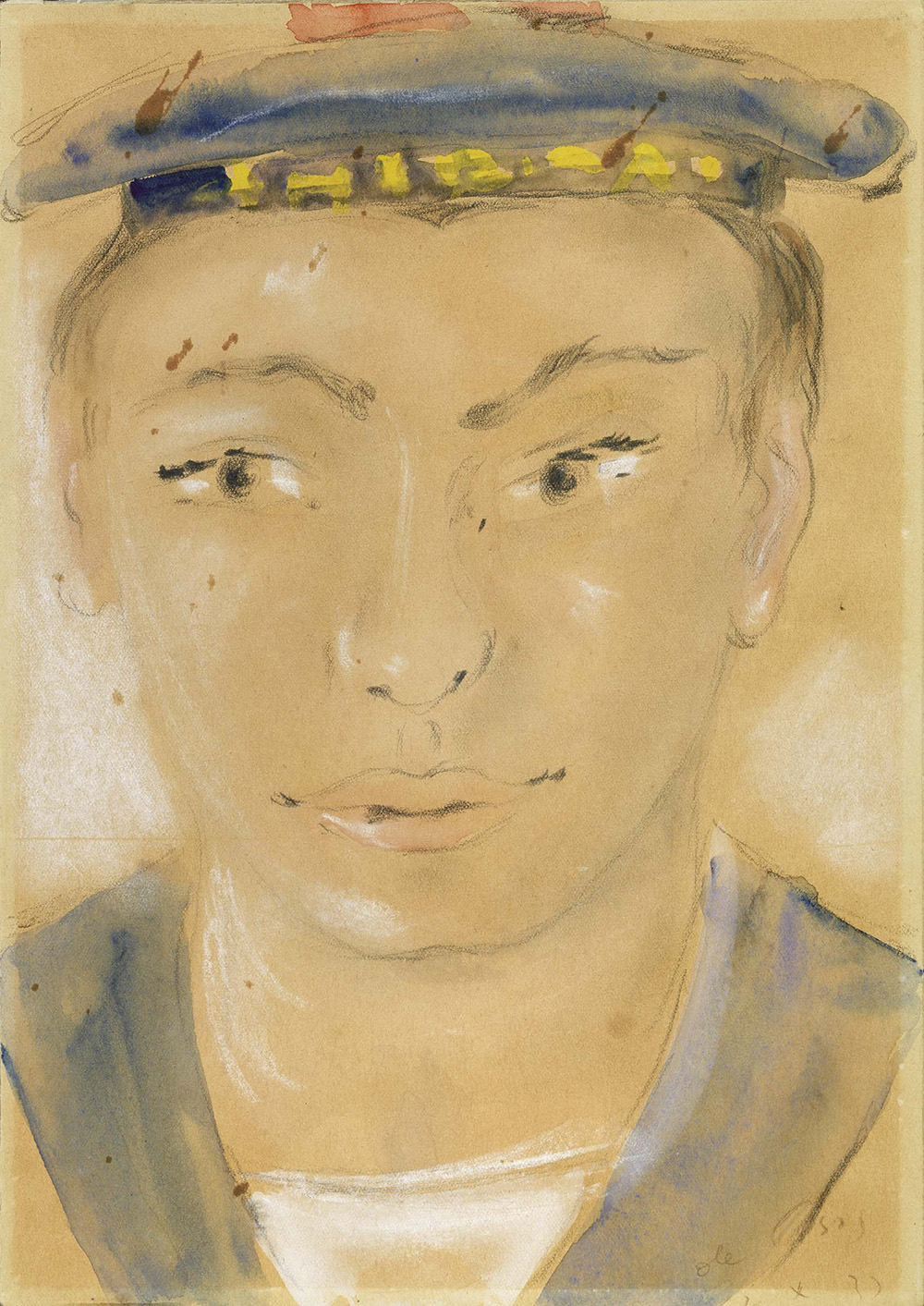 Filippo de Pisis, Ferrara 1896 - Milano 1956, Marinaio, 1935, Acquerello e pastello su carta, cm 25x17,4, Firma e data in basso a destra: de Pisis 2 X 35 Al verso numero d'archivio: 02101; su un cartone di supporto: timbro Brera Galleria d'Arte, Milano, Opera registrata presso l'Associazione per Filippo de Pisis, Milano, 20/03/2003, con n 02101, Esposizioni: Opere di maestri contemporanei, Prato, Galleria Farsetti, 5 - 12 ottobre 1963, cat p 26, n 39, illustrato