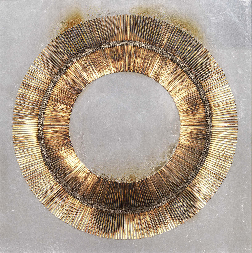 Bernard Aubertin, Fontenay-aux-Roses 1934, Dessin de Feu Circolaire, 2011, Fiammiferi bruciati su metallo, cm 50x50, Firma e data al verso: Bernard Aubertin 2011, Foto autenticata dall'artista