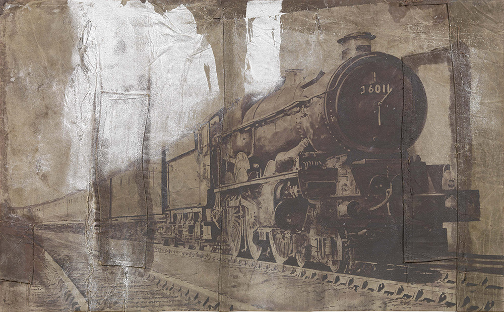 Luca Pignatelli, Milano 1962, Treno, 2011, Acrilico su telone di copertura di vagone ferroviario, cm 105,5x170, Firma, data e titolo al verso sulla tela: Luca Pignatelli / Milano 2011 / Treno, Foto autenticata dall'artista, Milano 20/08/2011