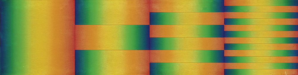 Getulio Alviani, Udine 1939 - Milano 2018, Cromia spettrologica orizzontale progressiva, Tecnica mista su tavola, cm 31,5x125, Firma e titolo al verso: Getulio Alviani / Cromia spettrologica / orizzontale progressiva / 13612: due timbri dell'artista