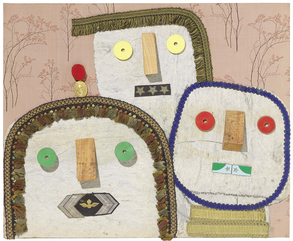 544, Enrico Baj, Milano 1924 - Vergiate (Va) 2003, Conferenza al vertice, 1973, Collage su tavola, cm 60,5x73, Firma in basso al centro: Baj Al verso: etichetta Galleria d'Arte Spagnoli, Firenze, con n 590: etichetta e timbro Studio d'Arte Mercurio: etichetta e timbro Galleria d'Arte Il Quadrifoglio, Torino, Certificato su foto di Gio' Marconi, Milano, Bibliografia: Roberta Cerini, Martina Corgnati, Enrico Baj Catalogo generale delle opere dal 1972 al 1996, Ediz Marconi-Menhir, 1997, p 169, n 1676