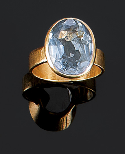 ANELLO Anello in oro giallo con grande topazio azzurro al centro di taglio ovale Peso gr. 10