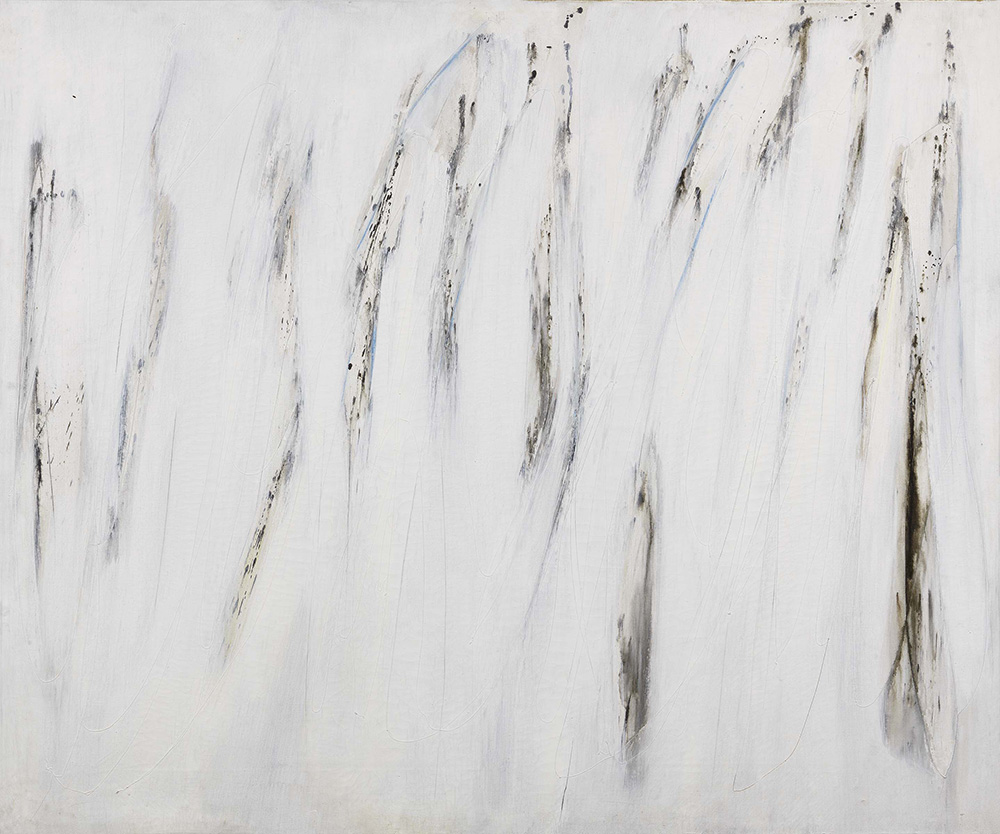 Enrico Castellani, Castelmassa (Ro) 1930 - Roma 2017, Senza titolo, 1959, Olio e fili su tela, cm 100x120, Firma e data al verso sulla tela: Castellani 2/59, Certificato su foto Archivio Castellani, Milano, con n 59-036