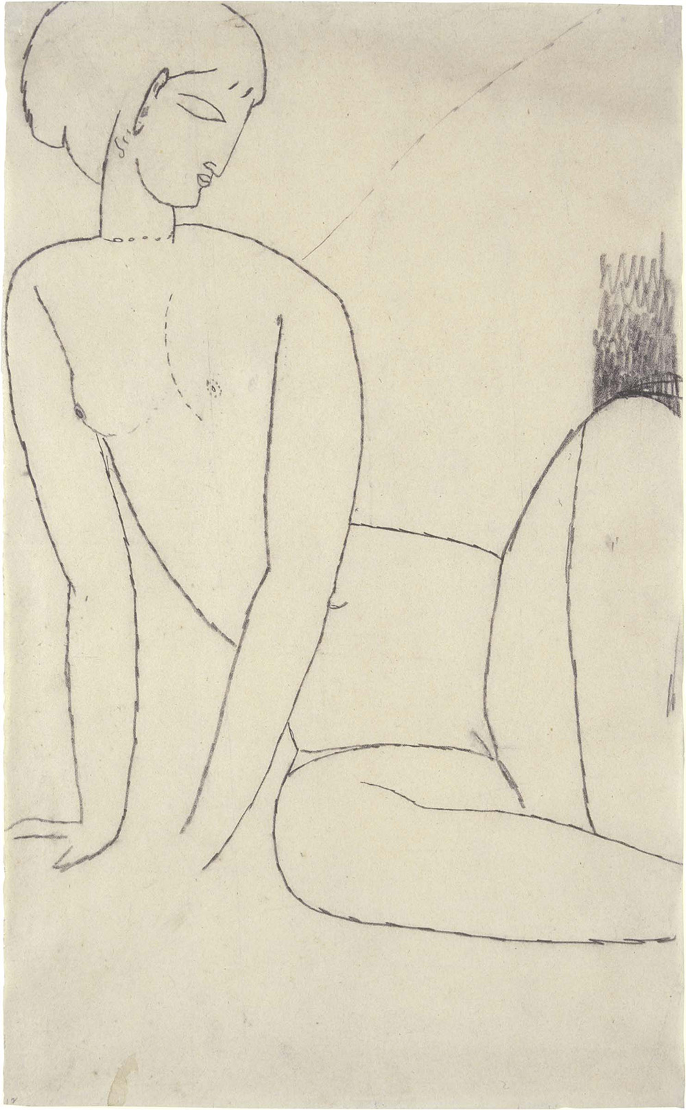 Amedeo Modigliani, Livorno 1884 - Parigi 1920, Nu accroupi (Nudo seduto con le mani al suolo), 1910-11, Carboncino su carta, cm. 42,5x26,2, Storia, Collezione Mariska Diederich, Parigi;, Collezione Sydney G. Biddle, West Chester;, Collezione privata, Esposizioni, Modigliani. The Sydney G. Biddle Collection, New York, Perls Galleries, 1956, cat. p. 11, n. 15;, Modigliani, Tokyo, The National Museum of Modern Art, poi Nagoya, Aiki Prefectural Art Gallery, 1985, cat. n. 24;, Galleria Torbandena, Trieste, aprile 2007;, Modigliani. Legend of Montparnasse, Seoul, Seoul Arts Center, Hangaram Art Museum, 26 giugno - 4 ottobre 2015, cat. p. 166, illustrato a colori;, Modigliani, Genova, Palazzo Ducale, 16 marzo - 16 luglio 2017, cat. p. 58, n. 24, illustrato a colori., Bibliografia, Ambrogio Ceroni, Amedeo Modigliani, dessins et sculptures avec suite du catalogue illustré des peintures, Edizioni del Milione, Milano, 1965, p. 31, n. 78, fig. 78;, Joseph Lanthemann, Modigliani 1884-1920. Catalogue raisonné, sa vie, son oeuvre complete, son art, Gráficas Condal, Barcellona, 1970, p. 294, n. 523;, Christian Parisot, Modigliani. Catalogue raisonné - dessins, aquarelles - Tomo I, Editions Graphis Arte, Livorno, 1990, pp. 241, 341, n. 36/10;, Osvaldo Patani, Amedeo Modigliani catalogo generale, sculture e disegni 1909-1914, Leonardo Editore, Milano, 1992, p. 95, n. 67