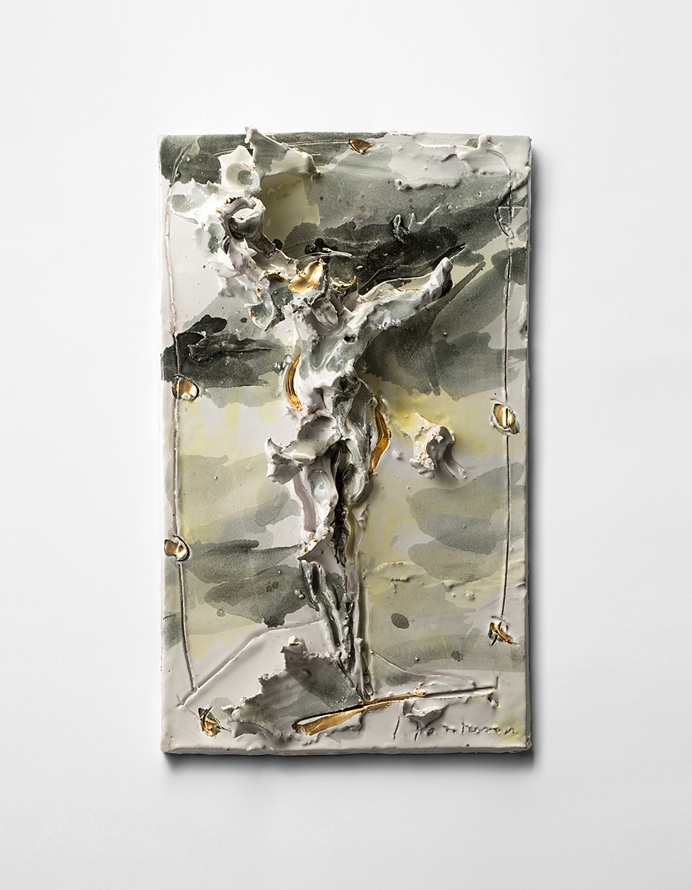 LUCIO FONTANA "Cristo" 1955-56 scultura in ceramica policroma smaltata cm...