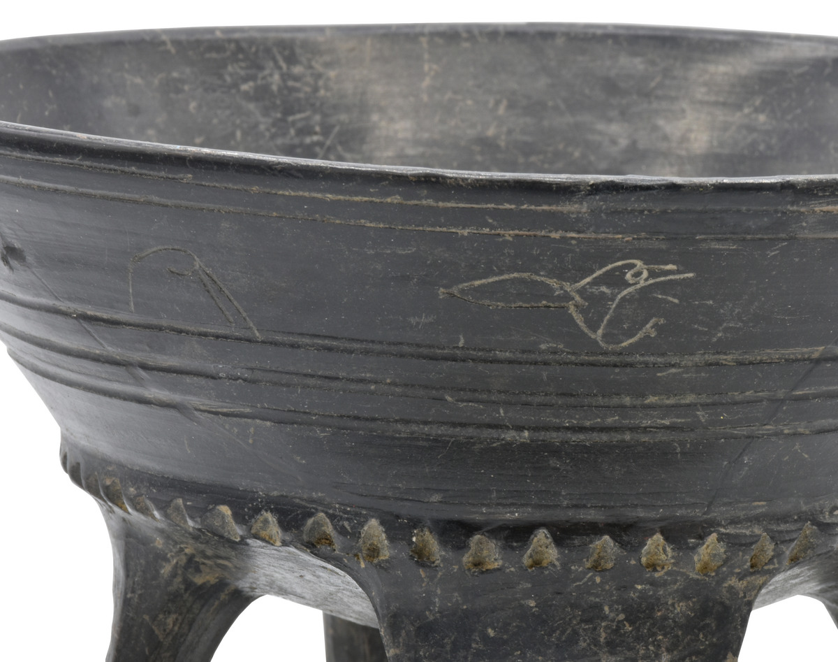 CALICE TETRAPODO IN BUCCHERO DATAZIONE: inizi VI sec. a. C. Forma Rasmussen...