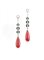 PAIO DI ORECCHINI PENDENTI IN ORO BIANCO, ONICE, DIAMANTI E SMALTO realizzati ad una linea di elementi a barretta decorati in damanti intercalati a cerchi in onice sagomata, il pendente in smalto rosso, lungh. cm 10,3 PAIR OF WHITE GOLD, ONYX, DIAMOND AND RED ENAMEL PENDANT EARRINGS