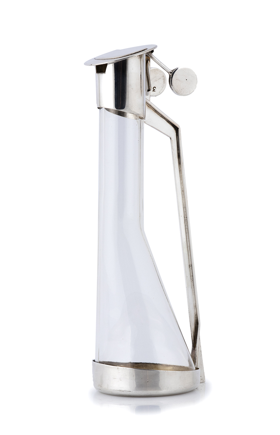 ACHILLE CASTIGLIONI - CLETO MUNARI Oliera, 1979-80 Argento e vetro, 18,5 x 5,5 cm Firma incisa sotto la base: Achille Castiglioni per Cleto Munari PUBBLICAZIONI A. Bonito Oliva, “La figura delle cose. Cleto Munari in Castel Sant’Angelo”, Electa, Napoli, 2000, p.113