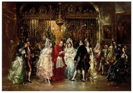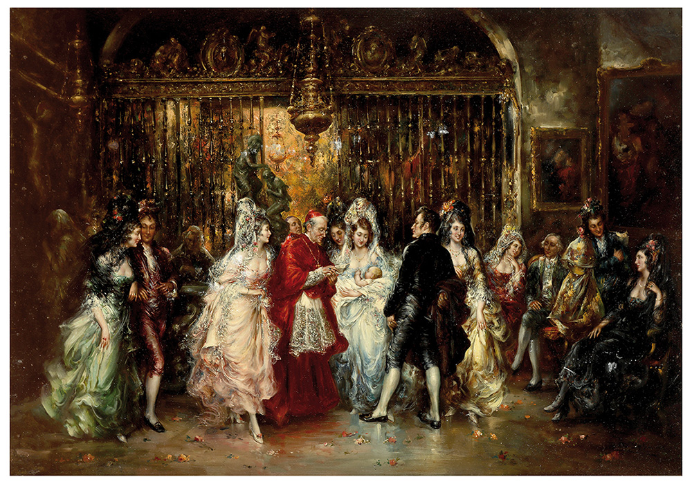 PABLO SALINAS Battesimo Olio su tavola, 45 x 65 cm Firma in basso a destra: Pablo Salinas