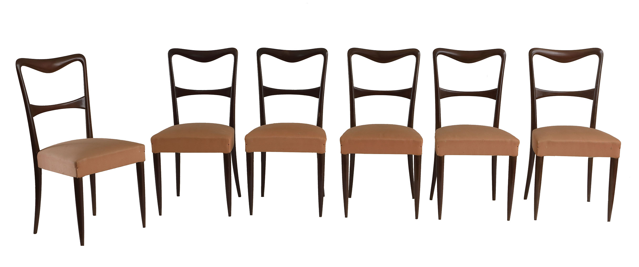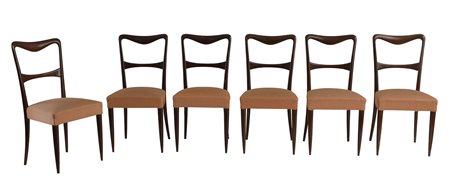 PAOLO BUFFA Sei sedie da pranzo in legno con schienale a giorno e...