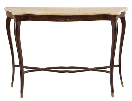 PAOLO BUFFA (attr.) Console in legno con gambe sagomate, ripiano originale in marmo e elementi decorativi in bronzo dorato, Anni ‘40 Legno e marmo, 87 x 124 cm