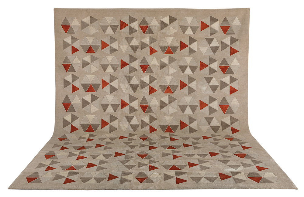 GIÒ PONTI - AMINI, ITALIA Tappeto, serie “Esagoni” color corallo, 1954 Seta pura e lana tibetana cardata a mano con lana filata, 300 x 360 cm Etichetta sotto il tappeto: AMINI Carpets