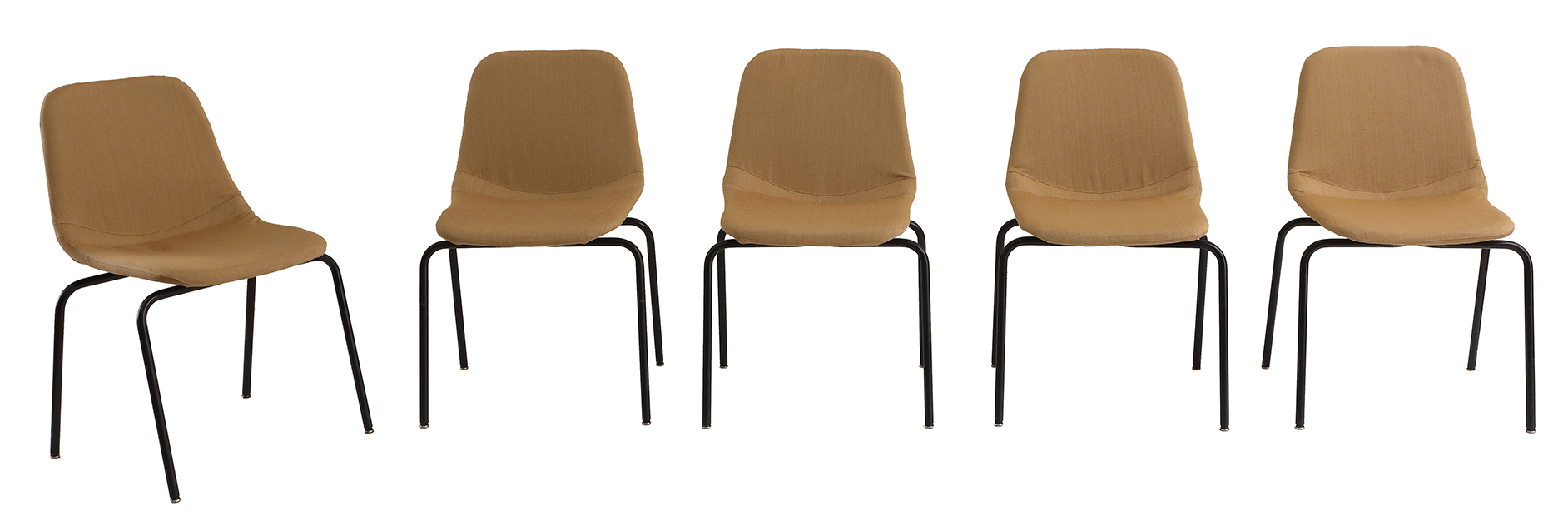 M.I.M - ITALIA Cinque sedie in stoffa beige Legno e stoffa, 80,5 x 48 x 40 cm circa Etichetta sotto la seduta: MIM Mobili S.p.a.